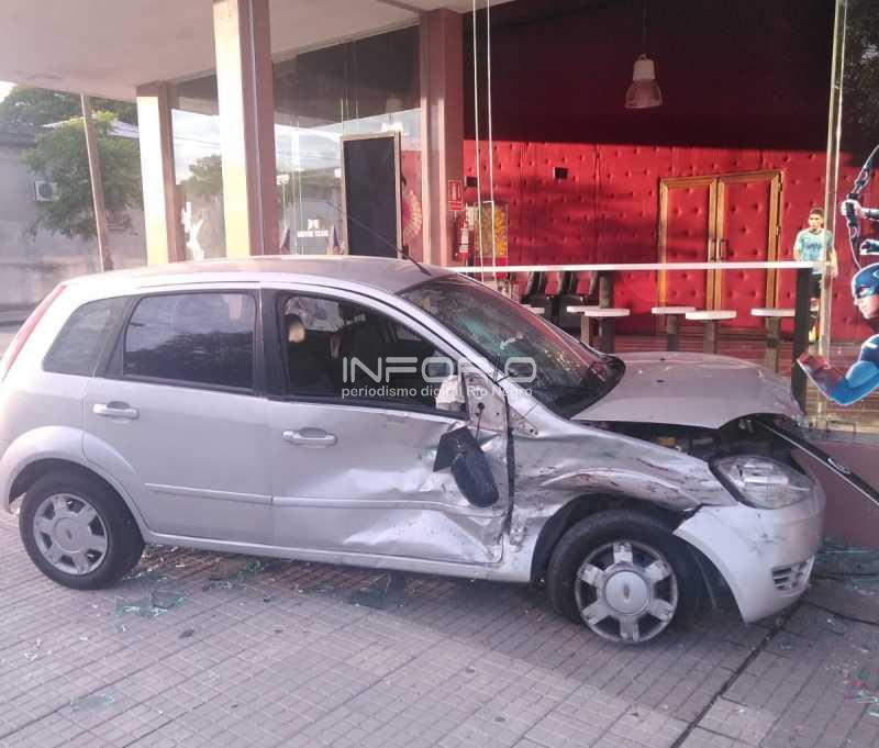 El hecho ocurrió sobre las 3:30hs cuando dos vehículos colisionaron en la esquina y uno de ellos no respetó el semáforo existente. Los dos automóviles Ford impactaron y uno de ellos terminó impactando contra la vidriera existente en el cine Movie Club Fray Bentos.