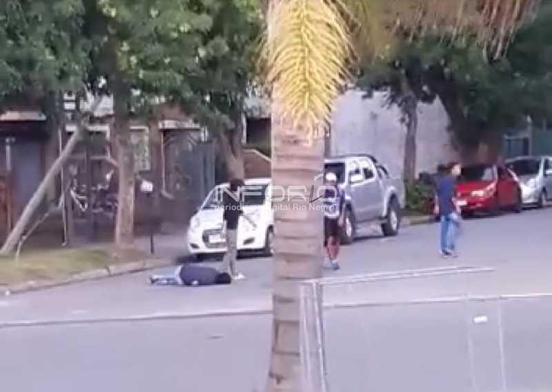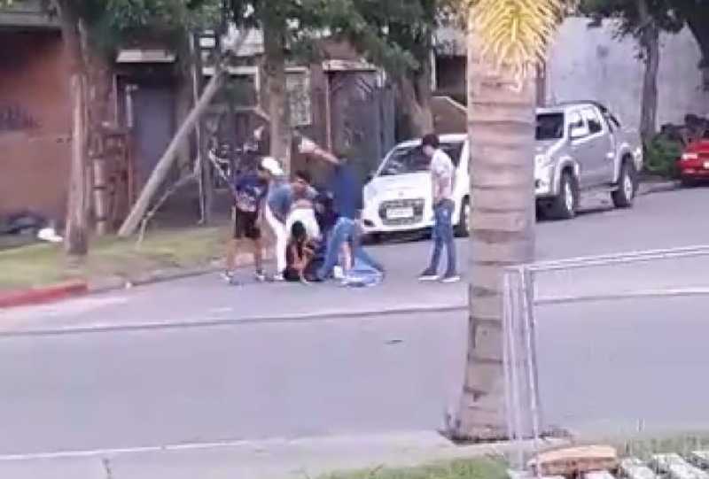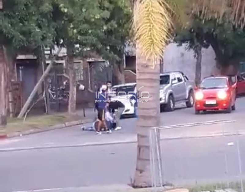 Según supo InfoRIO, la agresión ocurrió el 1o de enero de mañana y con el correr de las horas se viralizó el video donde se ve a 5 jóvenes que rodean a la víctima y dos de ellos principalmente son quienes lo agreden a golpes de puños y puntapié cuando se encuentra caído en la calle.