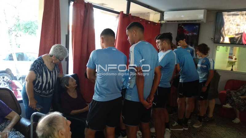 La juvenil llegó a Fray Bentos a disputar un amistoso con la selección de Río Negro tras lo que fue el título del litoral que obtuvo la albiceleste. Pero la actividad que cumplieron primero fue la de visitar el hogar de ancianos de Fray Bentos donde conversaron con los abuelos y compartieron un momento emotivo de intercambio de experiencias.