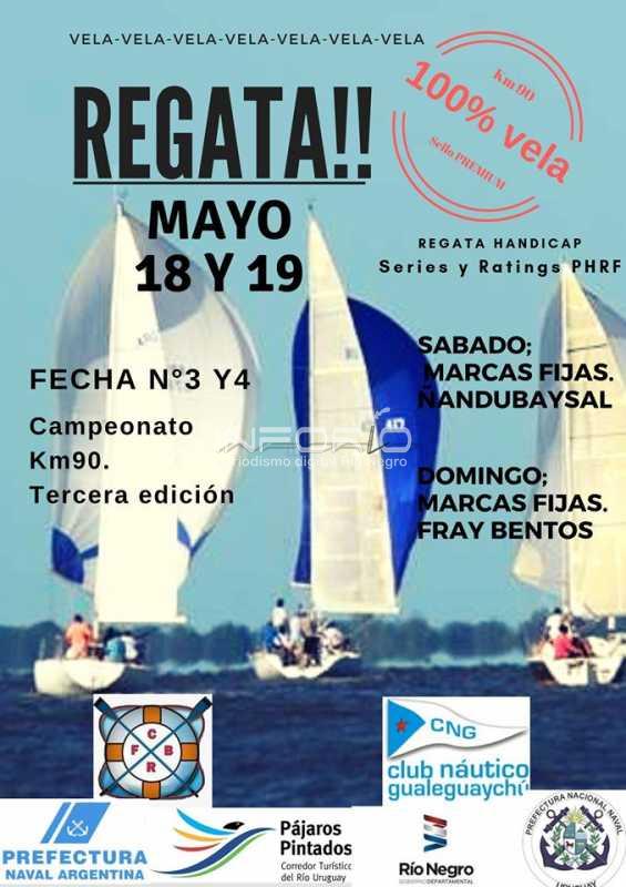 Por un lado el domingo, "sobre puntos fijos", la 3ª edición del Campeonato Km 90 de vela, coorganizado por el Club Náutico Gualeguaychú y el Club Remeros Fray Bentos. La misma etapa se hará el sábado, pero sobre el balneario El Ñandubaysal en Gualeguaychú.