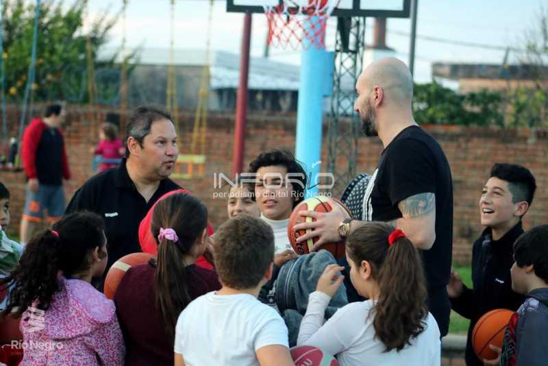 Sebastián Vázquez estuvo en la Plaza del J.3 entregando útiles deportivos, junto al Departamento de Deportes de la IRN, pero fundamentalmente en una acción social con decenas de niñas y niños que juegan basquetbol cada día y ayer disfrutaron de una jugador “elite”, integrante de selecciones uruguayas.