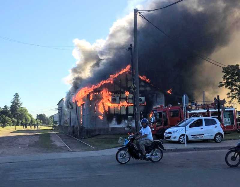 Un voraz incendio ocurrió esta tarde en los galpones de AFE en Young ocasionando pérdidas totales en el lugar.