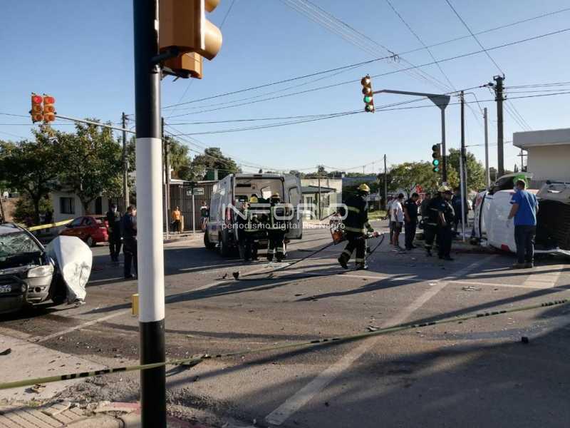 "El impacto fue tan fuerte que la camioneta furgón chocó con un auto FAW que estaba adelante , donde viajaba una pareja y su hijo oriundos de Flores" informaron colegas de radio Young.