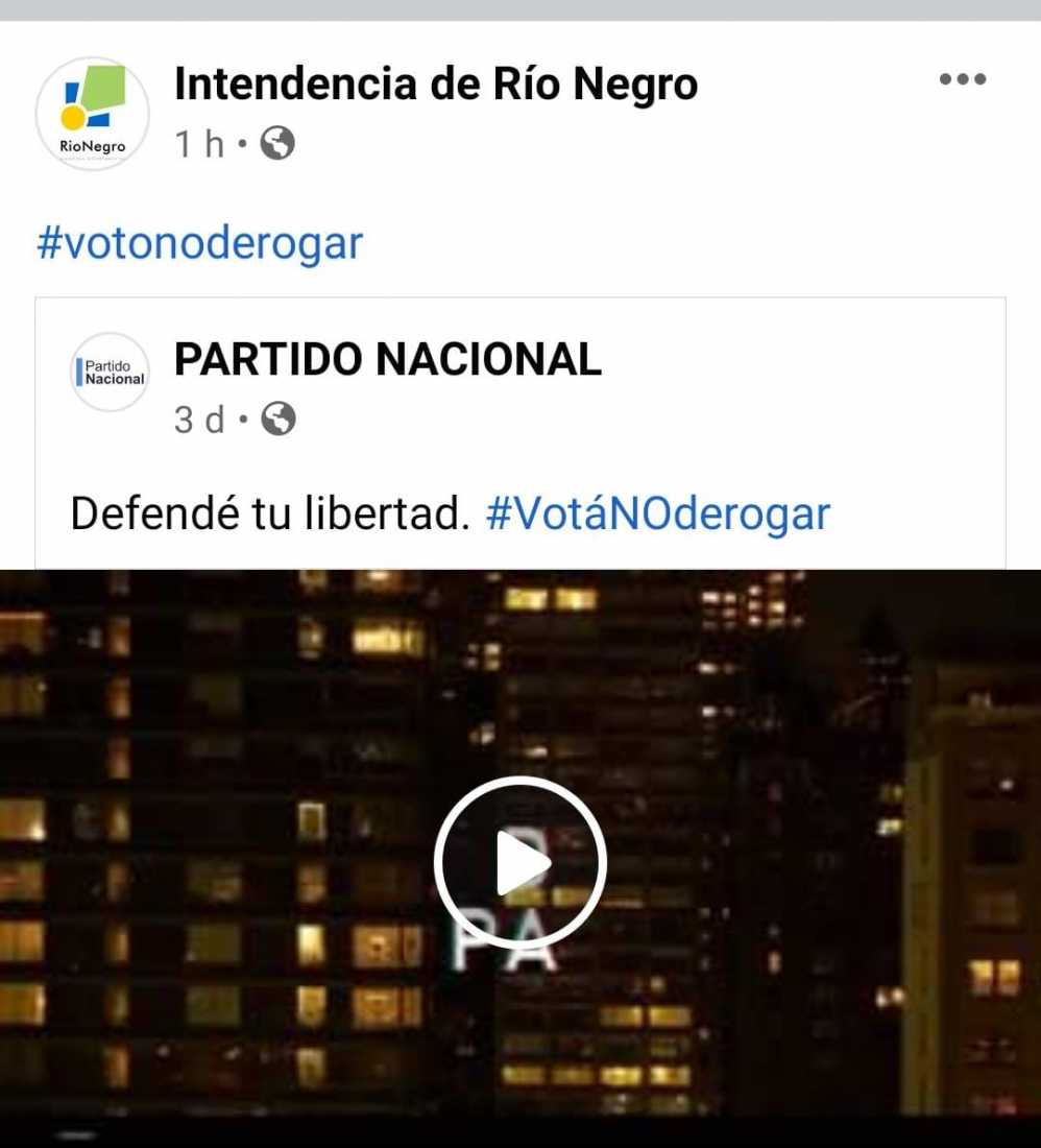 Durante varios minutos estuvo en la cuenta de Facebook de la Intendencia de Río Negro una de las piezas audiovisuales elaborada por el Partido Nacional en el marco de la campaña a favor de mantener los 135 artículos de la Ley de Urgente Consideración (LUC) que buscan derogar.