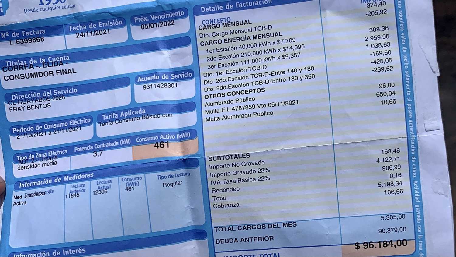 Este viernes se hizo viral el caso de Rossana Correa, una mujer de Fray Bentos que aseguró que no entiende por qué debe pagar $ 96.184 en su factura de UTE. El País consultó a la empresa, que aclaró $ 90.879 corresponden a deuda anterior generada por la clienta.