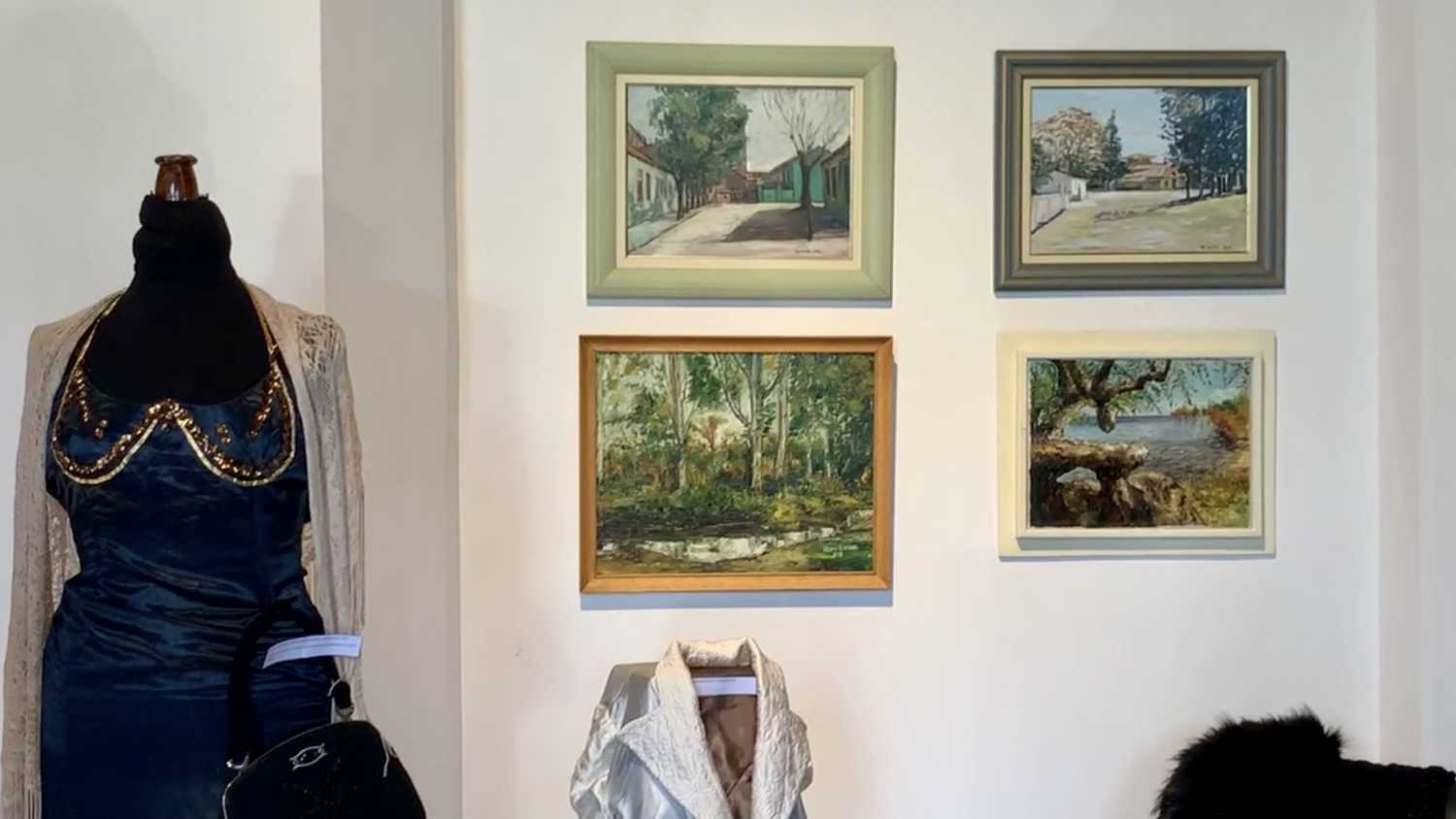 Cuadros, vestimenta, videos y objetos antiguos.