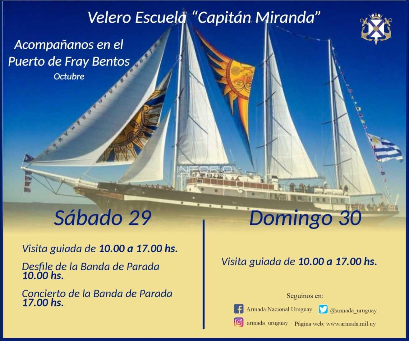Se confirmó la llegada del Velero Escuela "Capitán Miranda" al Puerto de Fray Bentos, para éste viernes 28 y estará también sábado 29 y domingo 30 y se podrá visitar.