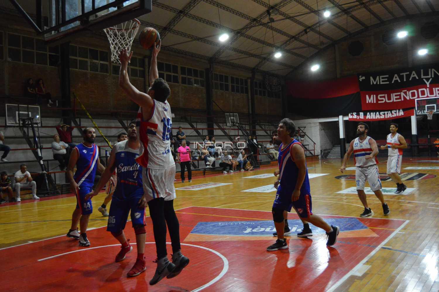 Tras ganar un partido cada uno como locales, por la Liga Regional de Maxi Basquetbol de Soriano-Río Negro, Nacional y Sandú definían el título en cancha neutral, en el estadio "Socios Fundadores" de Anastasia.