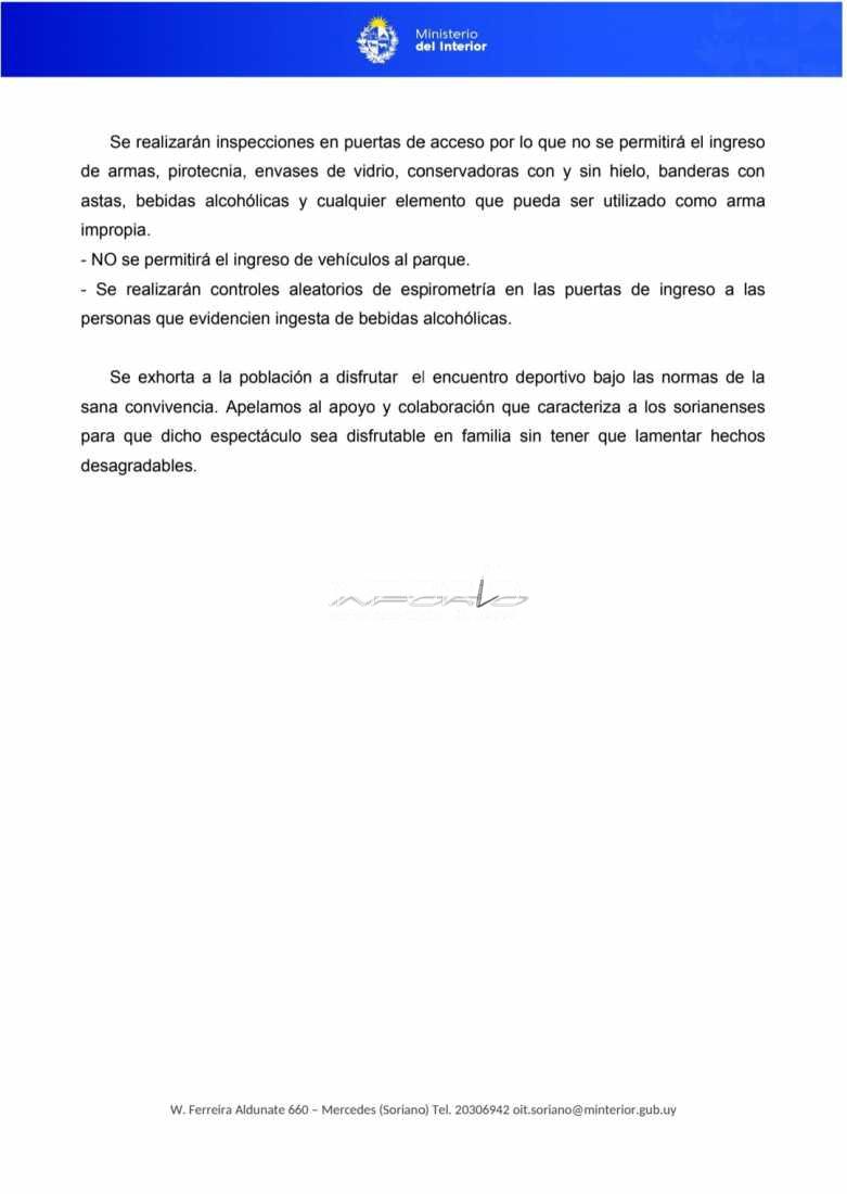 COMUNICADO DE JEFATURA DE POLICIA DE SORIANO.