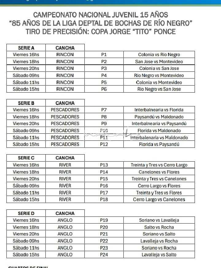 Desde el viernes hasta el domingo al mediodía, se disputará en Fray Bentos y la villa de Nuevo Berlín, el Campeonato Nacional de Bochas categoría Sub 15, que lleva el nombre 85° años de la Liga Departamental de Bochas de Río Negro.