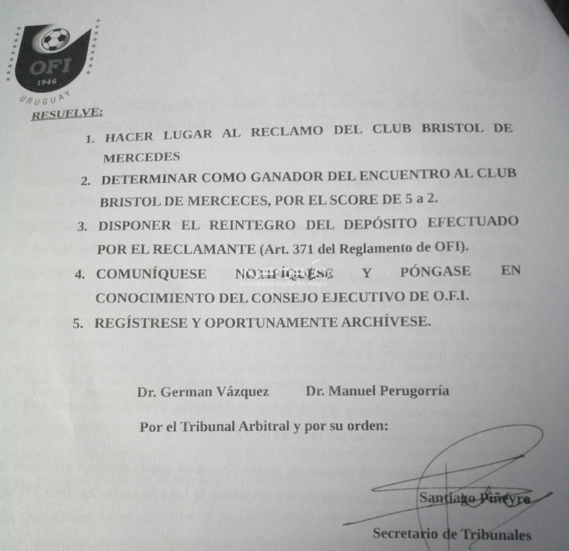 Los fraybentinos perdieron los 3 puntos ganados en la cancha, ante Bristol en el Tribunal de OFI y están últimos en la Tabla con solo 3 puntos.