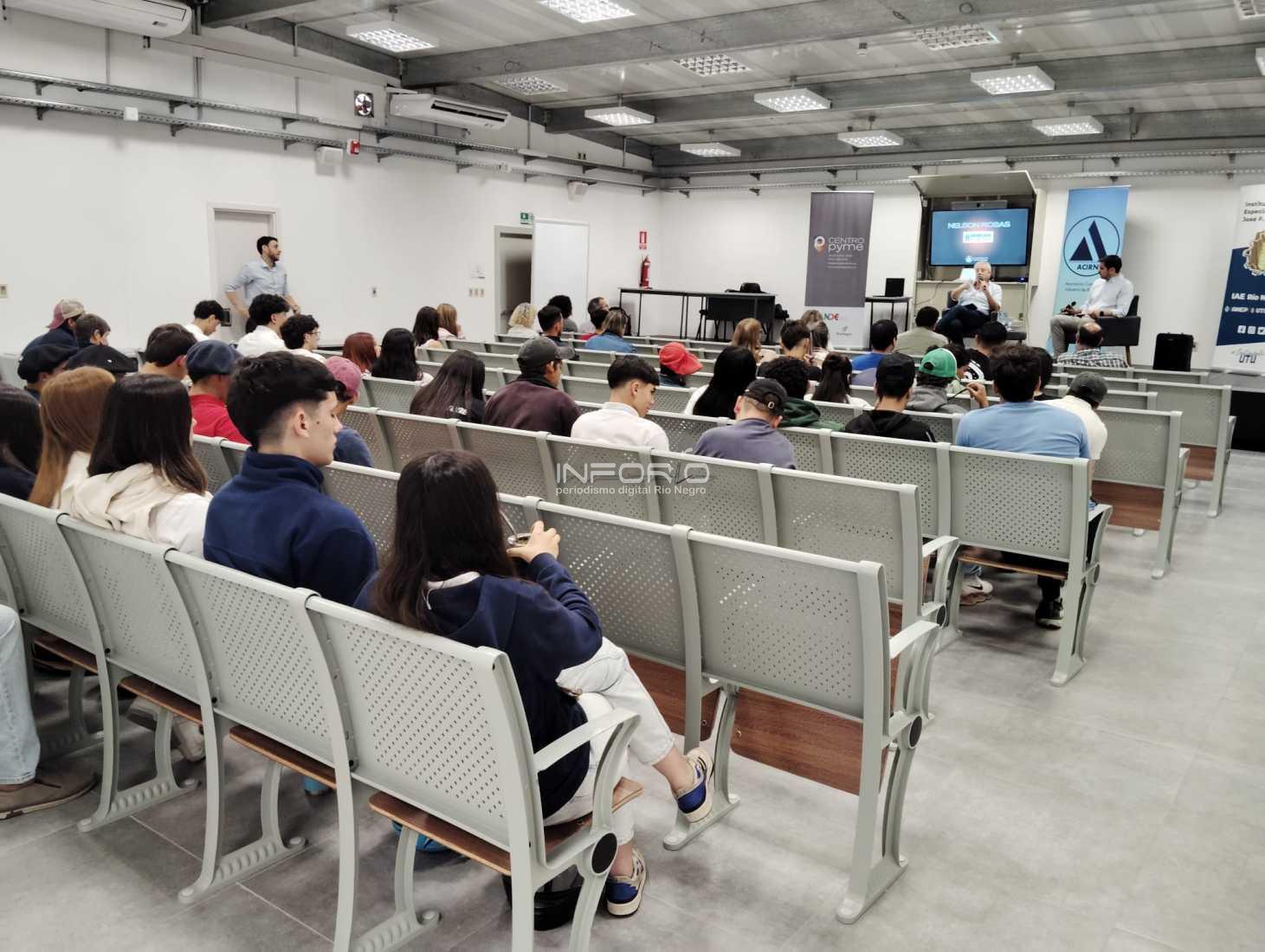 La actividad organizada por ACIRN y el Centro Pyme, en instalaciones del IAE, concentró a empresarios y emprendedores de Río Negro, que contaron su experiencia particular a alumnos del Instituto de Alta Especialización Agropecuaria, buscando trasladar un rico testimonio que pueda inspirar o despertar en jóvenes estudiantes una futura actividad o insipiente camino de crecimiento en cada uno.