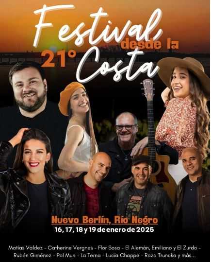 Desde el jueves 16 y hasta el domingo 19 de enero de 2025 se estará desarrollando una nueva edición del Festival “Desde la Costa”, en la localidad de Nuevo Berlín, en el departamento de Río Negro.