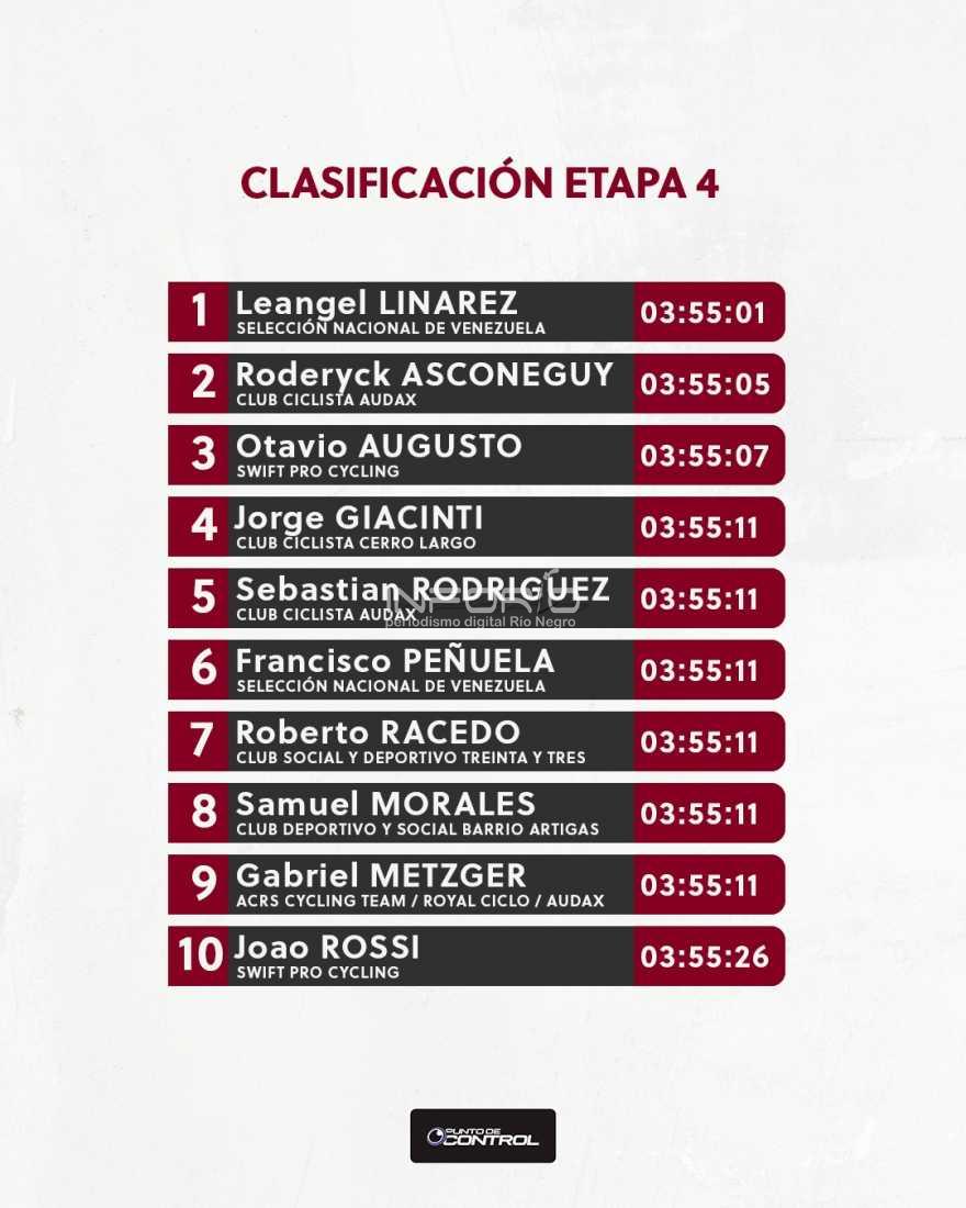 Hoy lunes, se dividieron en varios grupos al llegar a la Heroica y entre los punteros estuvo el fraybentino, Sebastián Rodríguez que defiende al Audax de Flores, culminando 5to.