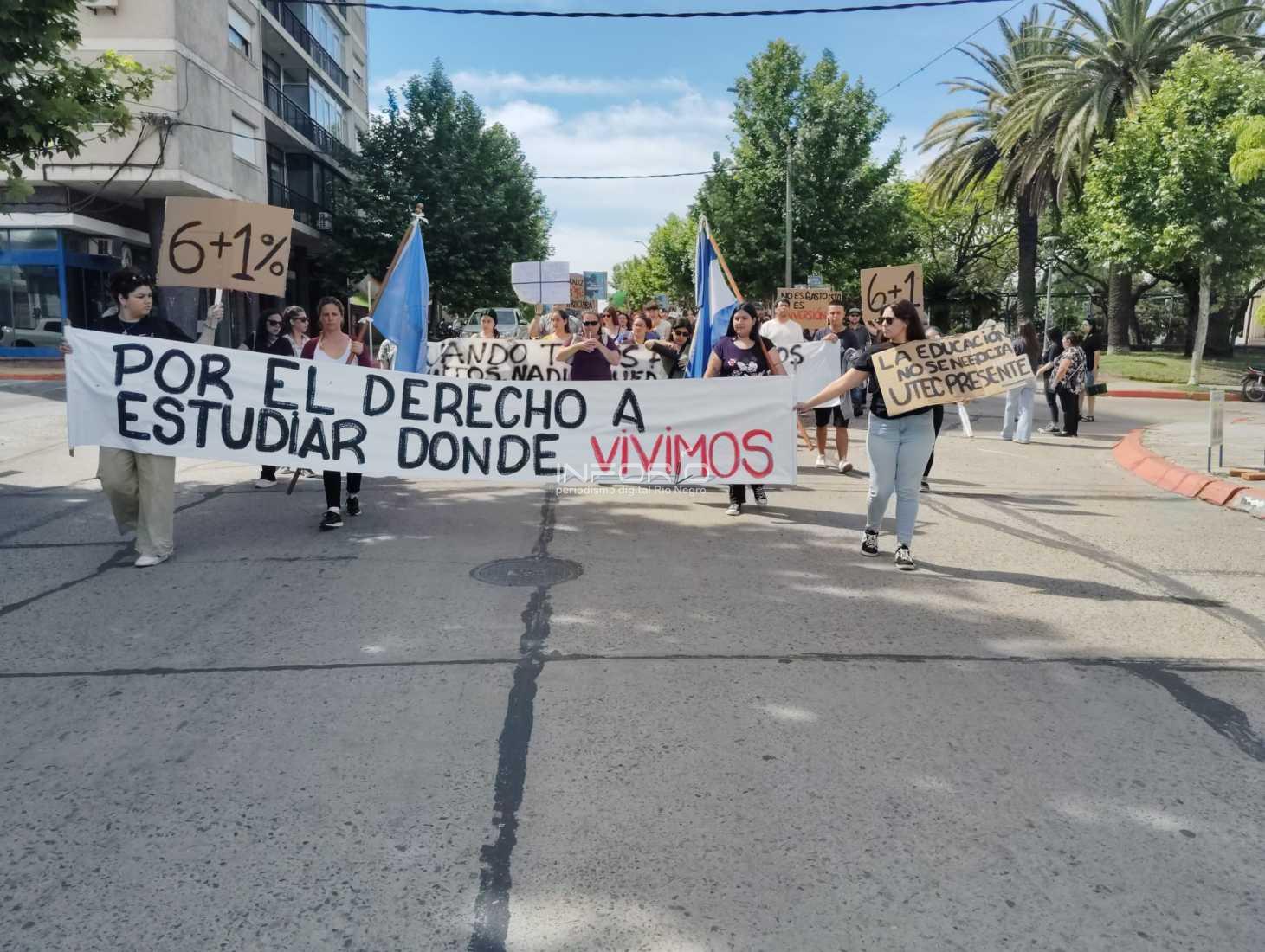 Con una realidad algo diferente a la que se produce en el IFD, estudiantes de UTEC se sumaron a la marcha por mayor presupuesto para el Instituto de Formación Docente en Fray Bentos.