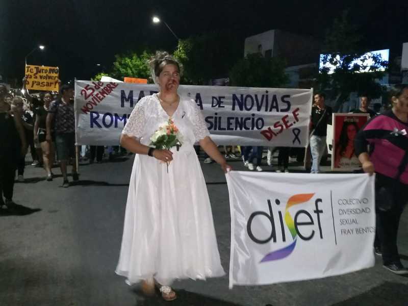 Como se ha vuelto tradicional, el colectivo DISEF (Diversidad Sexual Fray Bentos) realizó en el día internacional de lucha contra la violencia hacia las mujeres, una marcha para generar conciencia sobre la violencia física y psicológica que sufren las mujeres. Con un número mayor que el año pasado, desde las 17hs en la terminal de ómnibus comenzaron a realizar el maquillaje a cargo de docentes que gentilmente aportaron su tiempo para la causa. Además también el peluquero fraybentino José Cremella aportó los peinados a quienes quisieron mostrar las marcas que la violencia física deja en las mujeres.
