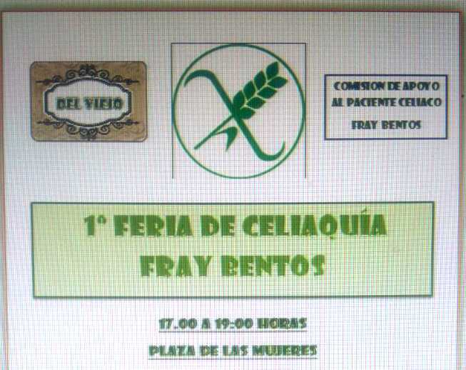 El Grupo de Apoyo al Paciente Celíaco de Fray Bentos (CAPACE), organiza para este jueves 5 de Mayo, en Plazade las Mujeres a partir de las 17:00 horas la primera Feria Itinerante de nuestra ciudad, donde aprte de la clásica "Feria del Plato" (con distintas exquisiteces para las personas que padecen dicha enfermedad), habrá un ciclo de charlas, para infromar, concientizar y prevenir todo lo itinerante a este padecimiento que se conlleva día a día, tratando de tener una mejor calidad de vida.