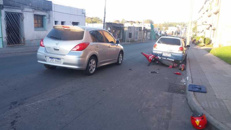 Según se pudo saber circulaba un automóvil Nissan matrícula JFB 8460 por calle Roberto Young con rumbo hacia el balneario Las Cañas y al llegar a la intersección de calle Haedo colisionó con una moto Winner matrícula JFL 734, en la cual circulaban dos personas, una mayor y una menor de edad. A raíz del impacto las dos mujeres ocupantes de la moto caen al pavimento, siendo asistidas en el lugar. La moto quedó contra un automóvil que estaba estacionado en el lugar.