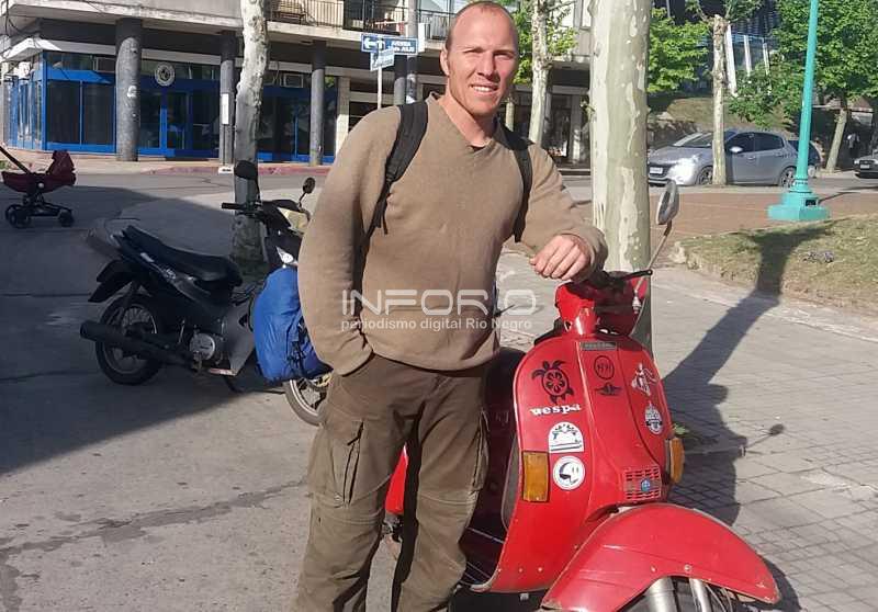 Llegó a Fray Bentos en la tarde de este martes Christian Schetsche a bordo de su Vespa año 78, con la cual viene recorriendo toda América.