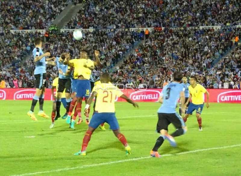 El partido se jugó a estadio lleno y con muchos fraybentinos (entre ellos varias excursiones de niños) en las tribunas del estadio Centenario. Gran comienzo de la Celeste, tocando, manejando el ritmo y a los 12´ya se ponía en ventaja con gol de Coates, luego de un centro, pero ésta vez con el cuerpo. Tuvimos un par de chances más, pero a falta de un minuto para finalizar el primer tiempo, en una llegada aislada Ecuador nos empata. Pero en gran gesto técnico, en la última pelota, de taco Diego Rolan, pone el segundo y nos vamos al vestuario, más tranquilos. Si bien no jugamos bien, tampoco pasamos zozobra, pero a partir de los 30 del complemento, Ecuador no solo se adueñó del balón (que lo mantuvo casi todo el partido) sino que nos controló y terminamos literalmente pidiendo la hora, pues nos metió en nuestra propia área.