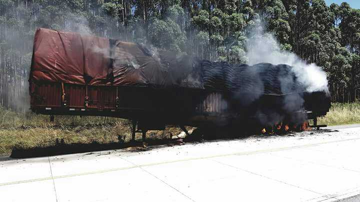 Esta mañana se registró un incendio en un camión con remolque que circulaba por ruta 24 "Guyunusa".