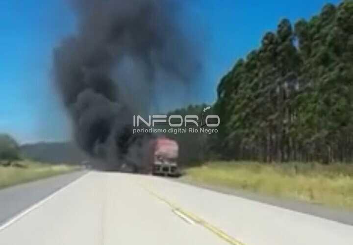 Según publicó en Facebook nuestro colega de Nuevo Berlín Cable Canal presente en el lugar, Alan Xisle; próximo a las 11 de la mañana comenzó el incendio en un remolque de la empresa Viana cargado con tierra enriquecida (abono para huertas).