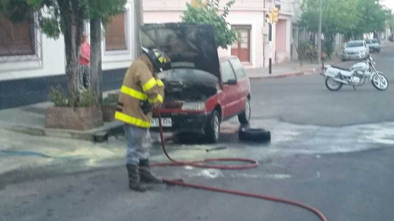 Próximo a las 19hs un automóvil FIAT Uno circulaba por calle Rivera cuando por causas que se tratan de establecer el motor tomó fuego.