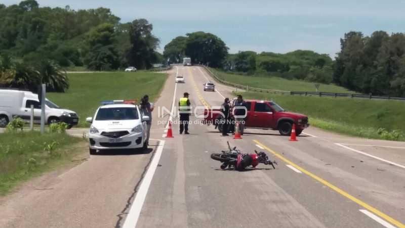 Al llegar a uno de los cruces, se produjo el impacto con la moto Yumbo 125 matricula SJH 436 que intentaba cruzar la ruta rumbo a Fray Bentos. La moto era conducida por un hombre mayor de edad y la conductora del automóvil, quiso evitar el impacto, saliendo hacia afuera y quedando a unos 50 metros contra unos árboles.
