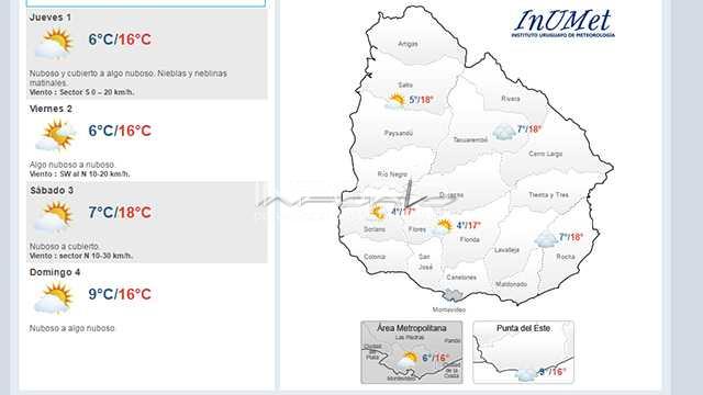 El INUMET advierte de bajas temperaturas para los próximos días. El mes del invierno (donde se "sienten" los primeros fríos), ya se ajusta a las temperaturas normales y ofrece sensaciones térmicas muy bajas para los próximos días, donde también se advierte que NO hay pronóstico de lluvias.