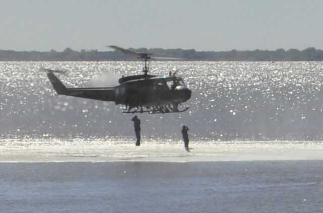 En este caso con el apoyo del helicoptero de la Fuerza Aerea Uruguaya 60 efectivos hicieron unos 120 saltos al río Uruguay. Los saltos se hicieron en la zona de del Anglo, lugar que ya fue utilizado el año pasado.