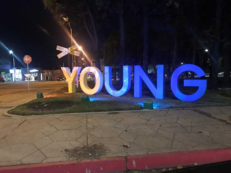 En Young en tanto se realizó la intervención al cartel de la ciudad inaugurado sobre ruta 3. El artista Juan Mazza pintó la bandera de Uruguay de forma de aliento a la selección en el mundial de Rusia. La iniciativa fue apoyada por el municipio y la intendencia de Rio Negro.