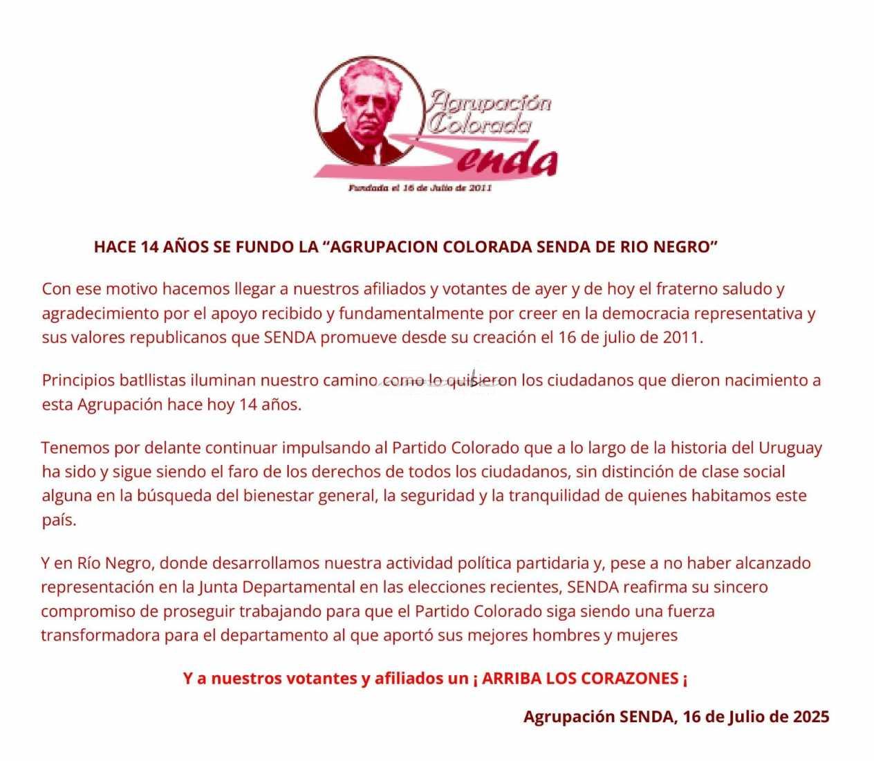 La finalidad de un grupo de correligionarios fue dar una mano al Partido Colorado que lo necesitaba y cuidar la casona que funciona como sede de la colectividad política.Alfredo Gandulfo, fundador de la Agrupación Colorada Senda, manifestó que desde la creación se ha venido trabajando en lo político, social...