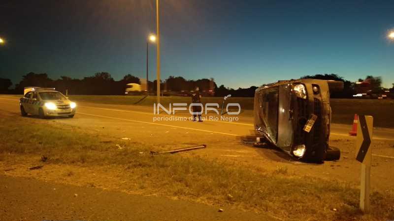 Esta tarde próximo a las 19hs se produjo el vuelco de una camioneta matrícula argentina en el trebol aéreo de UPM aunque los ocupantes no tuvieron lesiones de entidad.