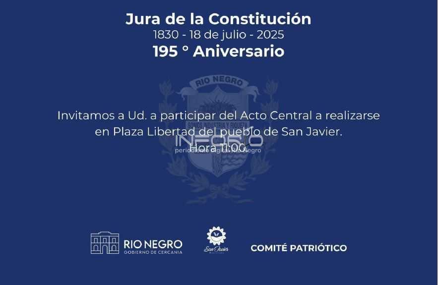 Este viernes 18 de julio, San Javier será sede del Acto Central en conmemoración del195° aniversario de la Jura de la Constitución.Autoridades locales, instituciones educativas, organizaciones sociales y la ciudadanía están convocadas a participar de este homenaje que celebra los valores fundacional...