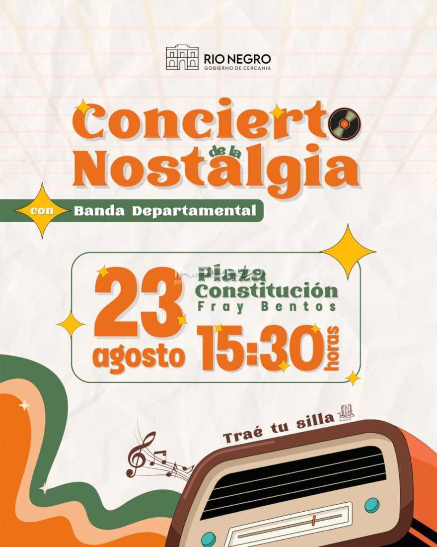 Este sábado 23 de agosto a las 15:30 h, la Banda Orquesta Departamental realizará un Concierto de la Nostalgia, en a la Plaza Constitución de Fray Bentos.Una tarde llena de música y recuerdos. ...