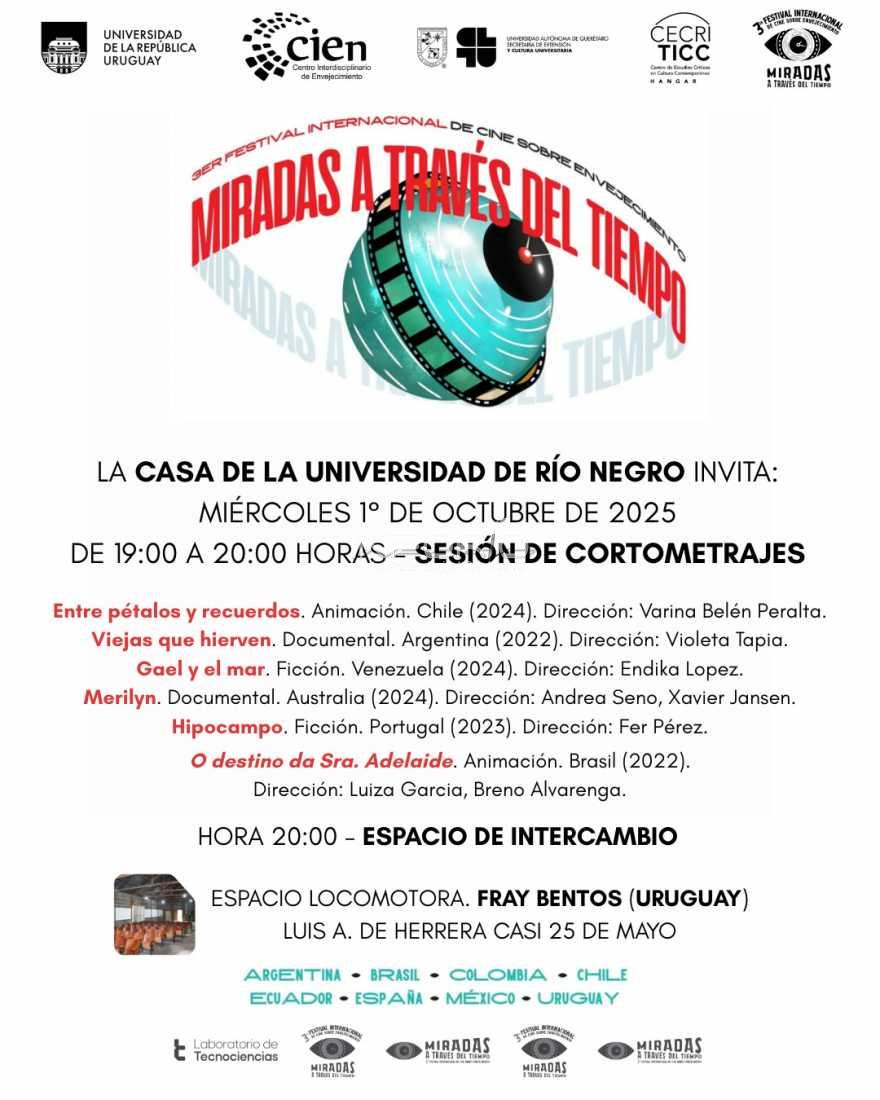 La Casa de la Universidad de la República de Río Negro hace una invitación abierta a todo el público para participar de una actividad de cine denominada “Miradas a través del tiempo”.Este miércoles 1 de octubre la cita es en Fray Bentos, en el Espacio Locomotora, ubicado en el predio atr&...