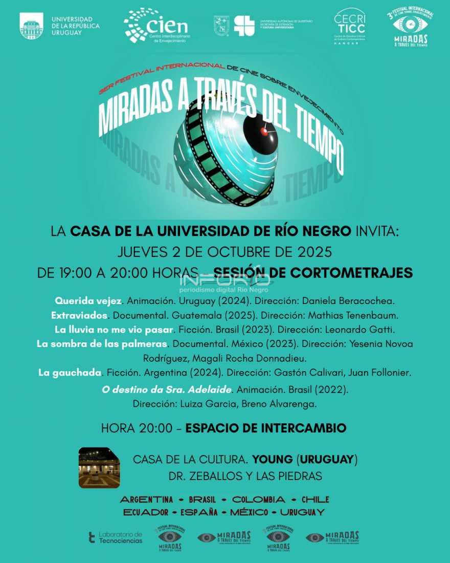 La Casa de la Universidad de la República de Río Negro hace una invitación abierta a todo el público para participar de una actividad de cine denominada “Miradas a través del tiempo”.Este jueves 2 de octubre la cita es en Young, en la Casa de la Cultura, ubicada en calle Dr. Zeballos y Las Piedr...