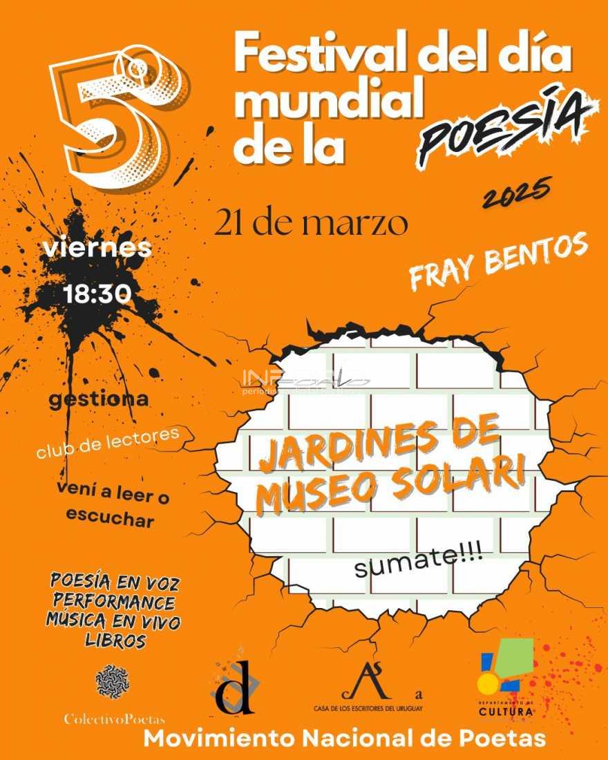 El viernes 21 de marzo, desde la hora 18.30, en el espacio de los jardines del Museo Solari de Fray Bentos, se realizará la quinta edición del Festival del Día Mundial de la Poesía.La actividad es gestionada en nuestra ciudad por el Club de Lectores de Fray Bentos y la invitación está dirigida a todo...