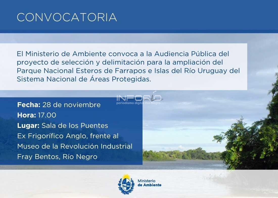 El Sistema Nacional de Áreas Protegidas del Ministerio de Ambiente convoca a la población interesada a una Audiencia Pública sobre el Proyecto de Selección y delimitación para la ampliación del Parque Nacional Esteros de Farrapos e islas del río Uruguay.La actividad está prevista para h...