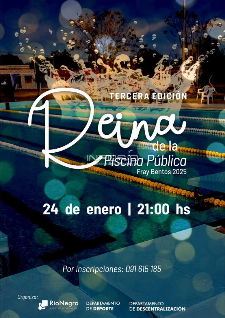 El sábado 24 de enero, desde la hora 21.00, en la piscina municipal de Fray Bentos, ubicada en calle Rivera casi Crottogini (al lado de la escuela N° 7), se desarrollará la elección de la Reina de la Piscina Pública de Fray Bentos 2025.El evento congrega, año a año, a un numeroso público p...
