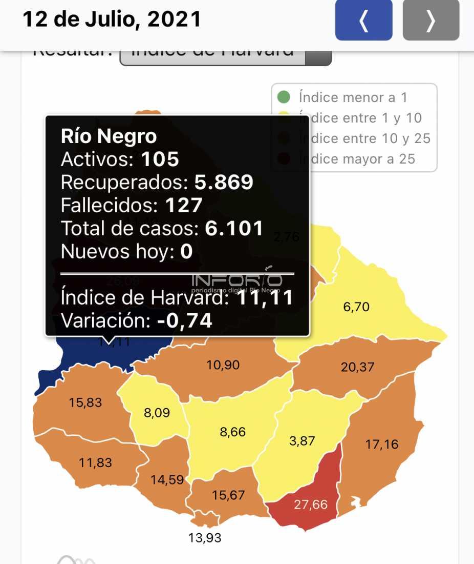 Río Negro tiene 105 casos activos y 11,11 de índice de Harvard. Estamos a un paso de pasar de color naranja a amarillo.