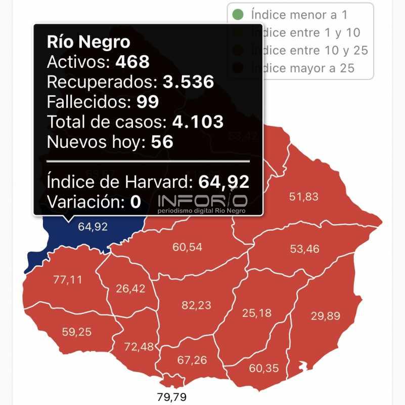En Rio Negro se reporta el deceso de un hombre de 59 años, con lo que las muertes ascienden a 98 en Río Negro.