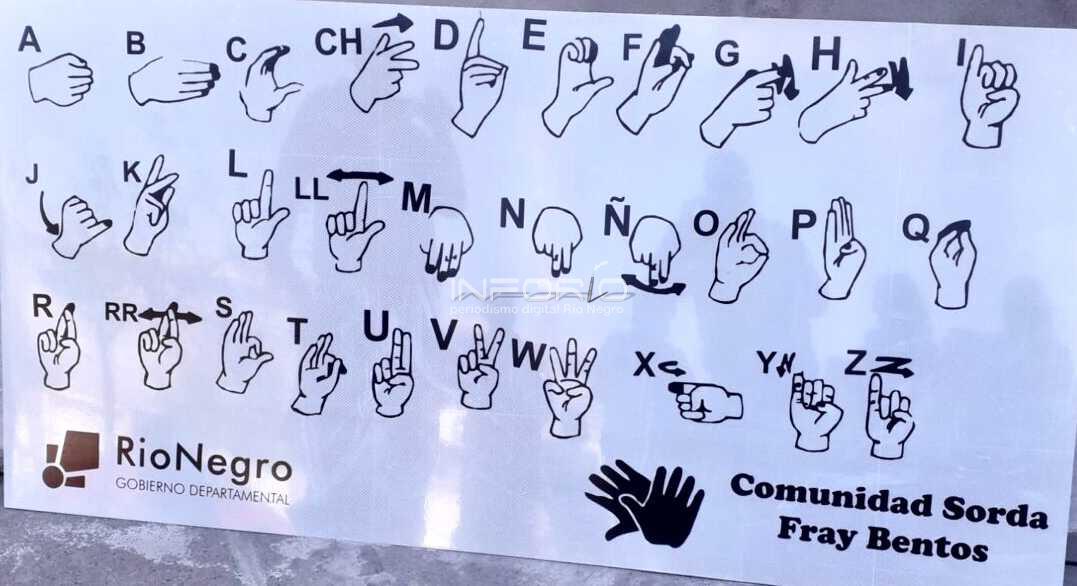 En el muro del corralón municipal que da a Rincón casi Capdevielle, y en presencia de integrantes de la comunidad sorda, Intendencia de Río Negro, maestros y alumnos de las escuelas Nº 1 y Nº 53, se realizó la inauguración del mural sobre lenguaje de señas.