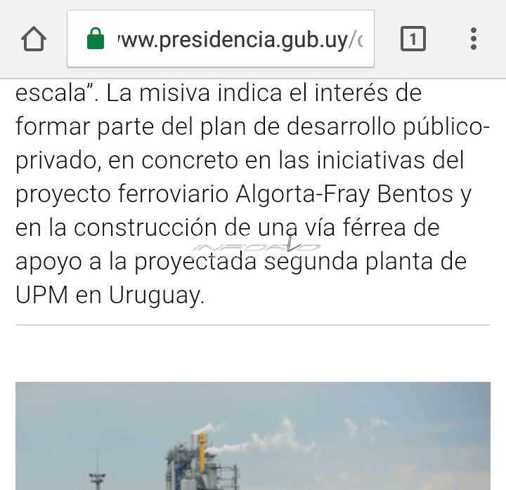 Presidencia de la República publicó la información que compartimos textualmente en InfoRIO sobre el interés de un grupo francés NGE de participar de la iniciativa de desarrollo del ramal Algorta Fray Bentos y de la construcción de una vía férrea que apoye a la nueva planta de celulosa de UP...