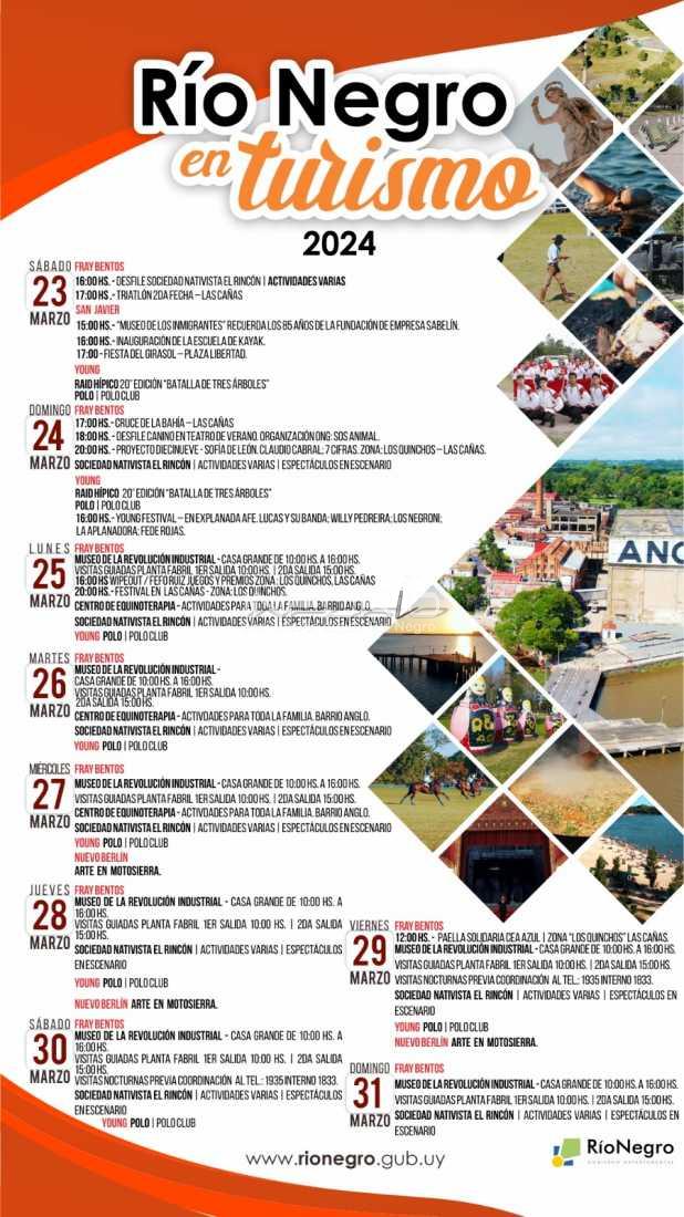 Una nutrida y variada actividad para Semana de Turismo se está promocionando desde el Departamento de Turismo de la Intendencia de Río Negro.La programación es para todo el departamento y día a día se puede consultar en las fotos- afiches que acompañan esta nota....